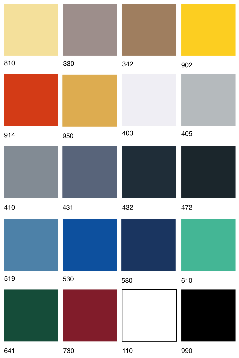 Actual colors may vary due to gloss, texture, or type finish.