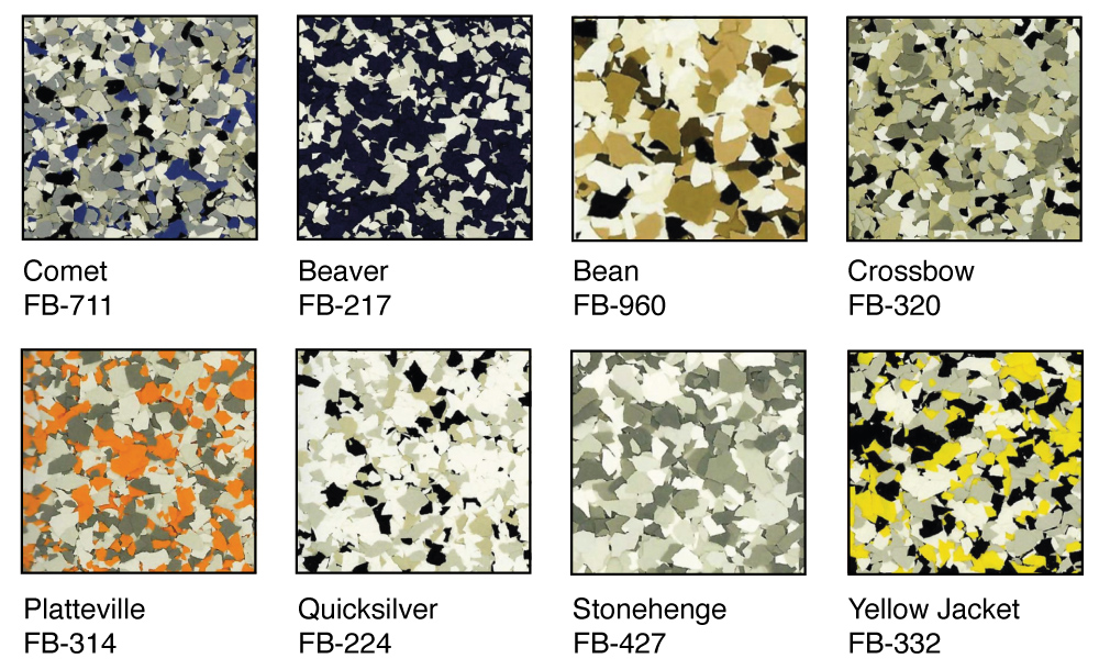 Disclaimer: The colors shown in this catalog may not be exact due to printing process limitations. For absolute color fidelity, colors should always be chosen from physical samples. All FLAKE blends are pictured in 1/4” unless marked otherwise.